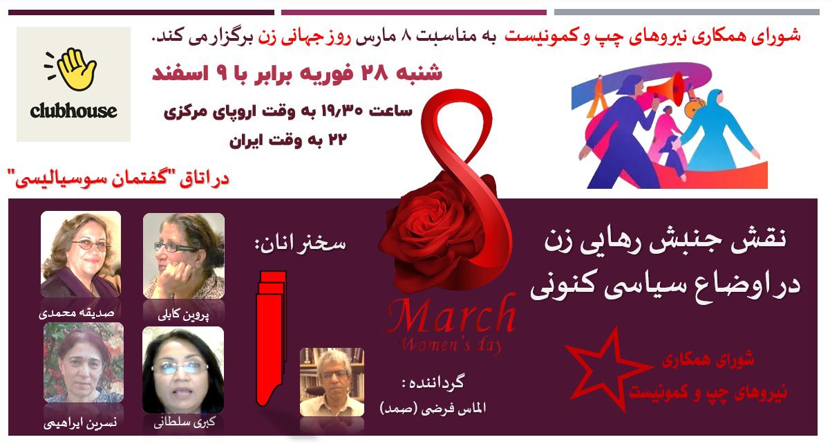 شورای همکارینیروهای چپ و کمونیستبه مناسبت ٨ مارس روز جهانی زن برگزار می کند.
